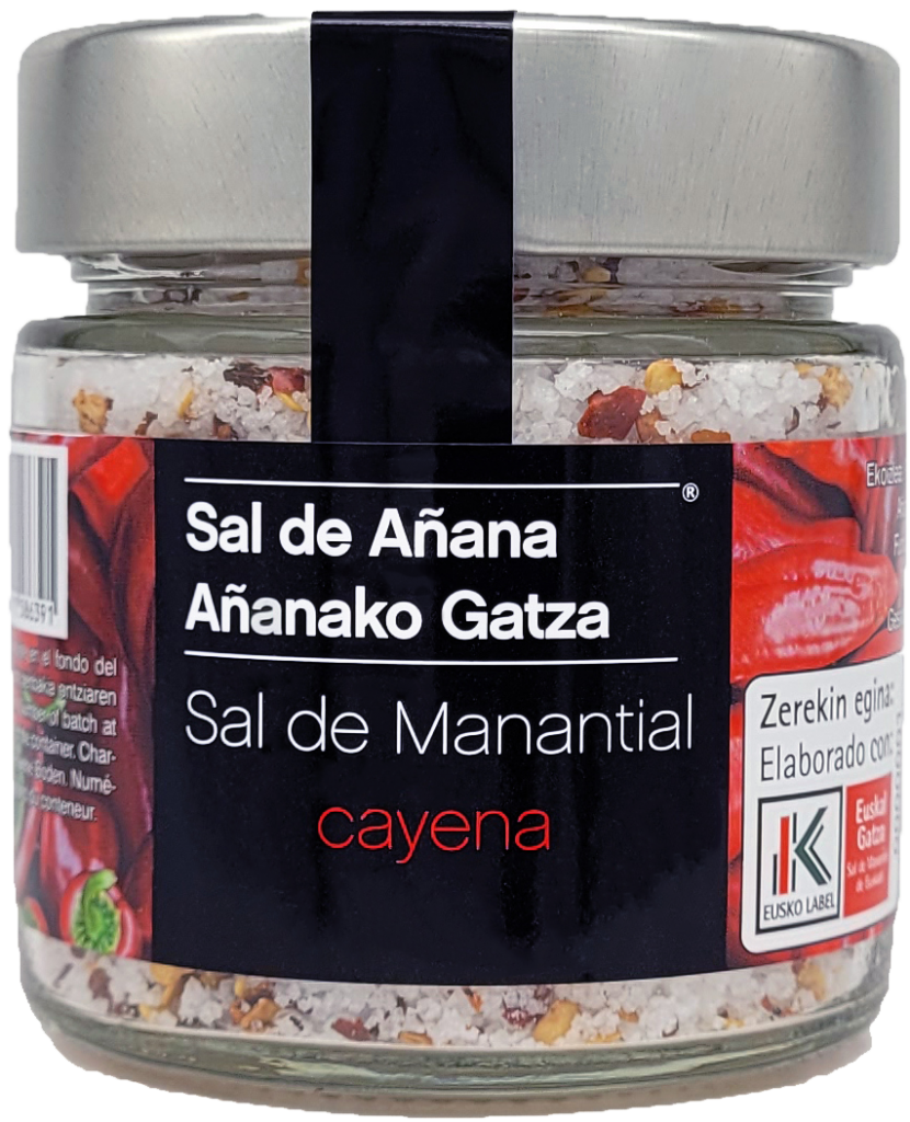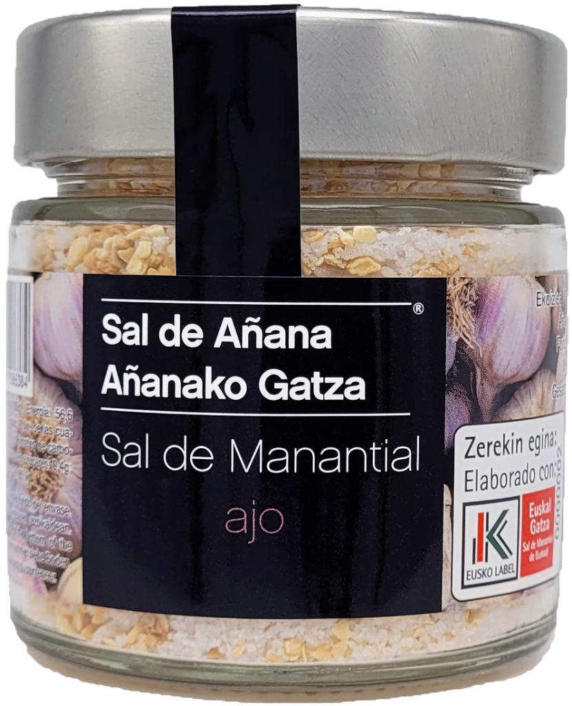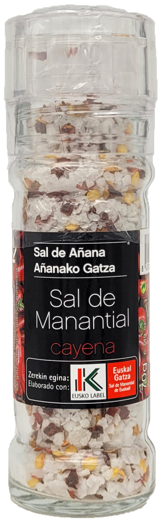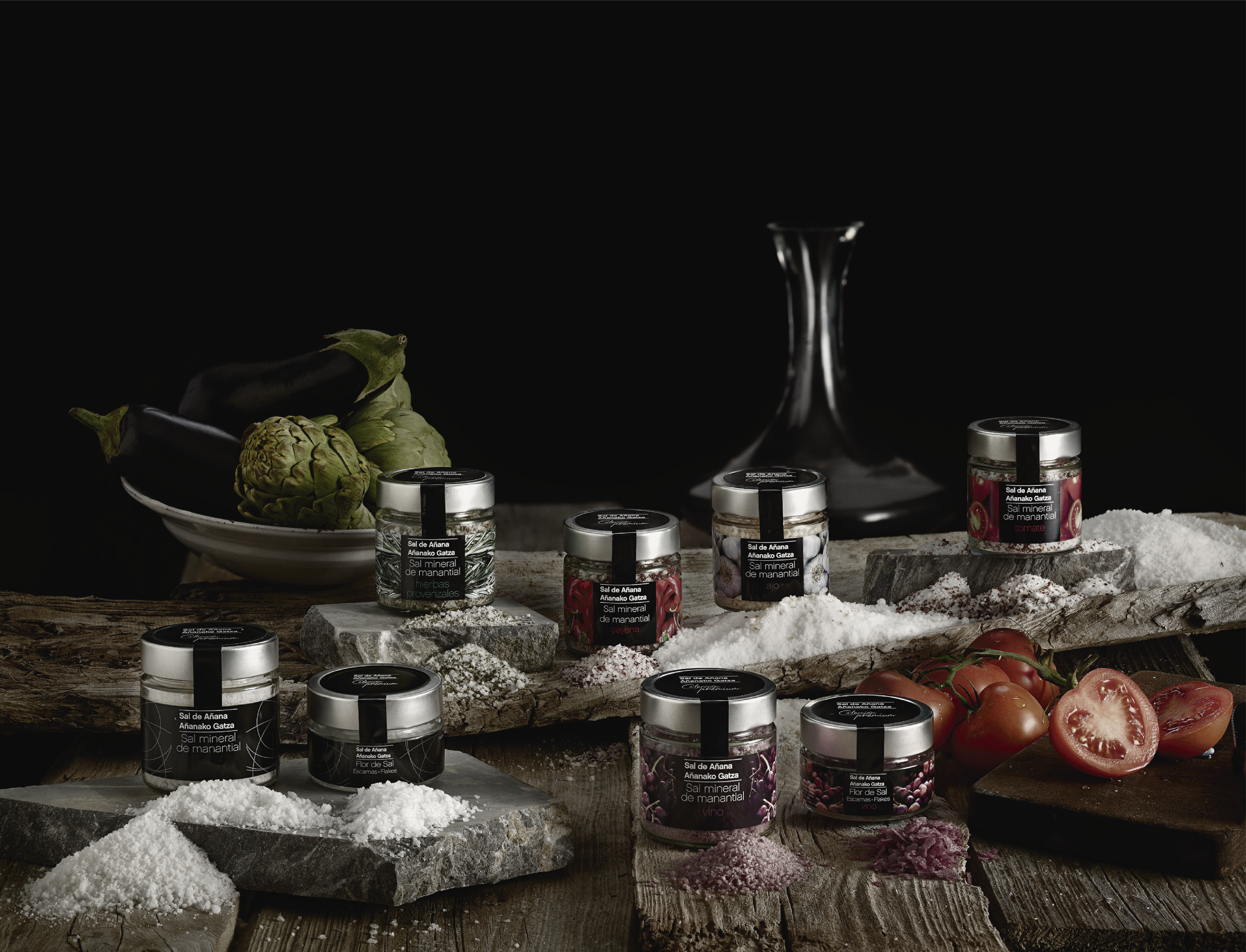 Sal de Manantial de Añana en combinación con una selección de sabores mediterráneos para acompañar a la maravilla mineral del Valle, en formato de molinillo o tarro de cristal o molinillo.