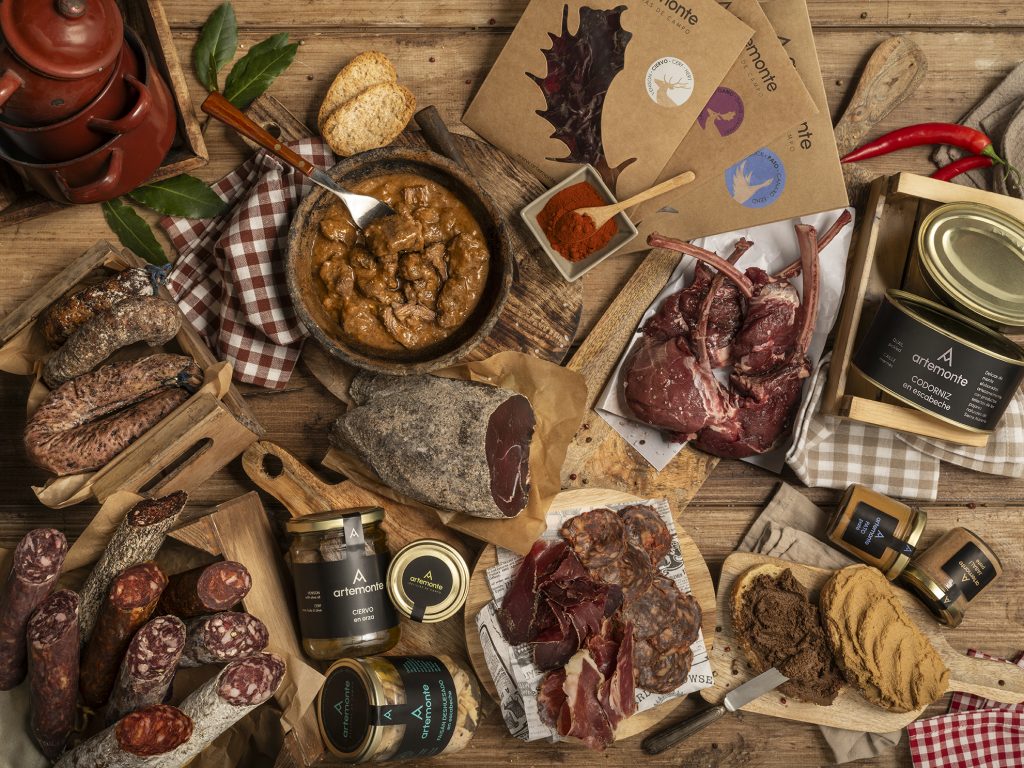 Productos gourmet de Carne de Monte creados, según la tradición adaptada a nuestros tiempos, a partir de ciervo, gamo, jabalí, pato azuló, perdiz… criados de manera silvestre.