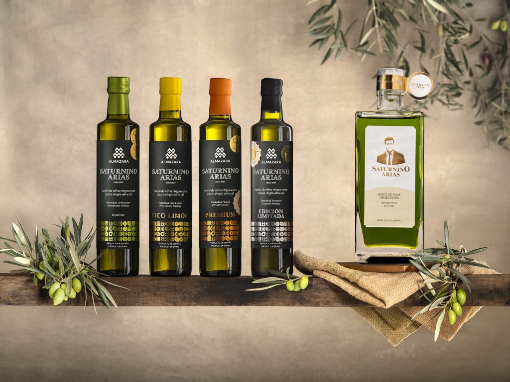 Aceite de Oliva Virgen Extra creado en base al trabajo de almazara de tres generaciones, Embotellado en variedades picual, arbequina, frantoio… extraídas de los campos de Jaén.
